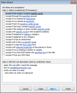 - Name your rule, select whether you want it to apply for all registered email accounts, and click Finish.