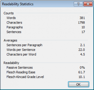 (If you’re using another version of Word, search for “readability” in the Online Help to get instructions on how to turn this feature on.)